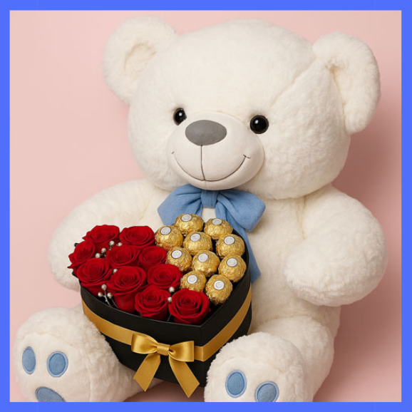 - Heart-shaped box with roses & 12 Pcs Ferrero Rocher
